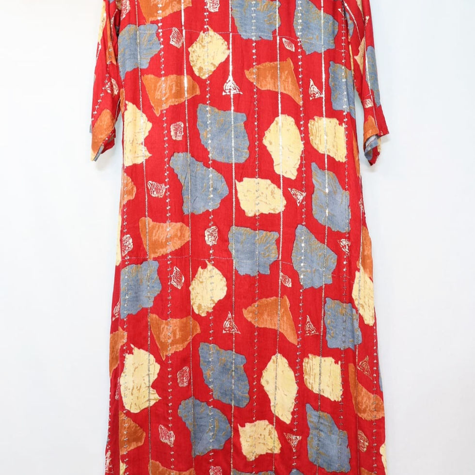 Cotton Green Sleeveless Top with Red Sequin Shrug